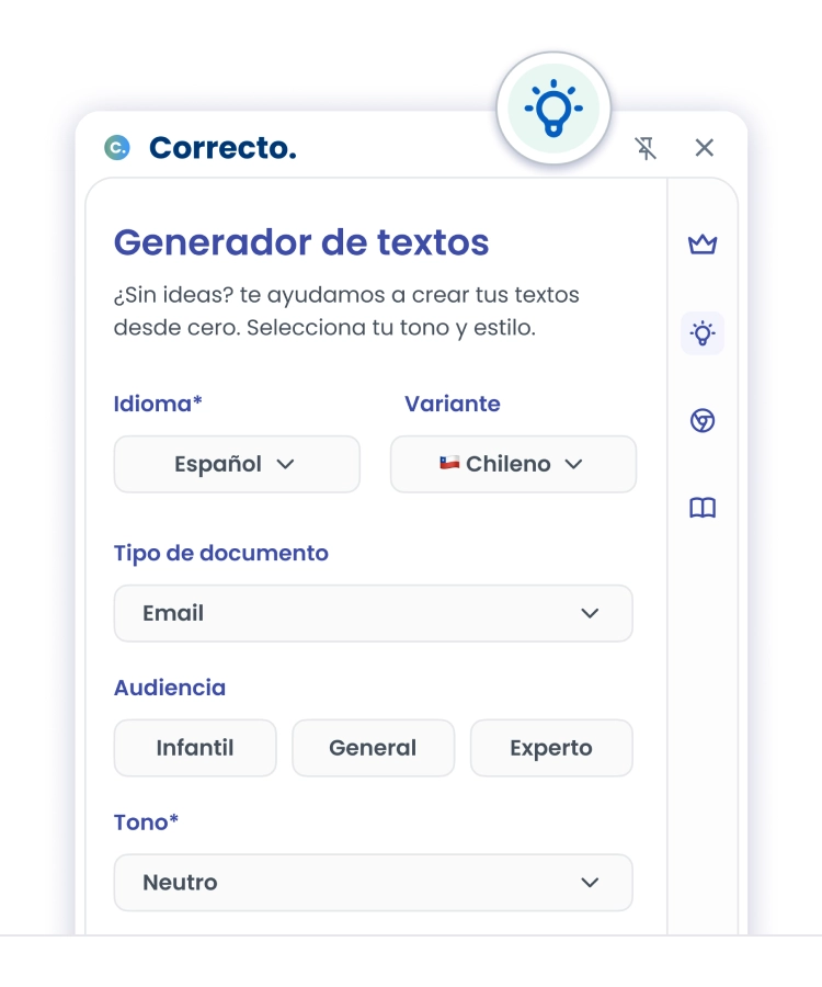 Correcto es tu nueva herramienta de IA que mejora y agiliza tu comunicación. Genera, corrige y perfecciona tus textos, mensajes e ideas en segundos.