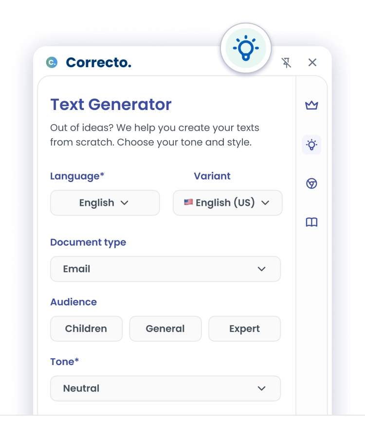 Correcto is useful for anyone who wants to communicate better — from students who need to deliver flawless assignments to professionals who write clear emails, or companies that want to sound more trustworthy. If you write, Correcto helps you.